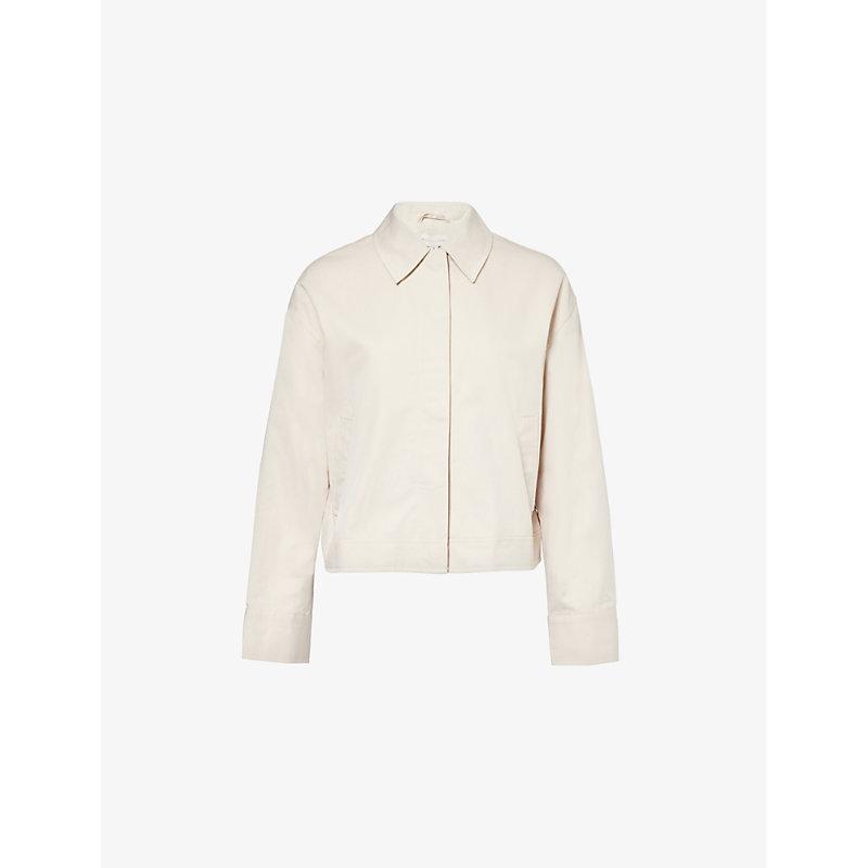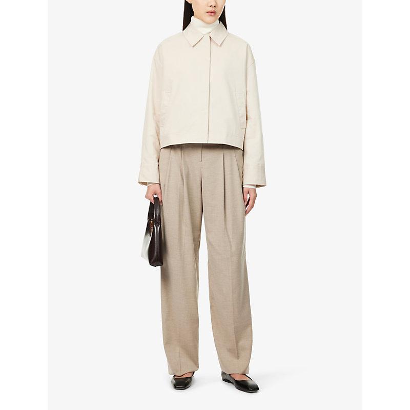 Pretty Lavish Womens Beige Isla Cropped Regular-Fit Cotton Jacket