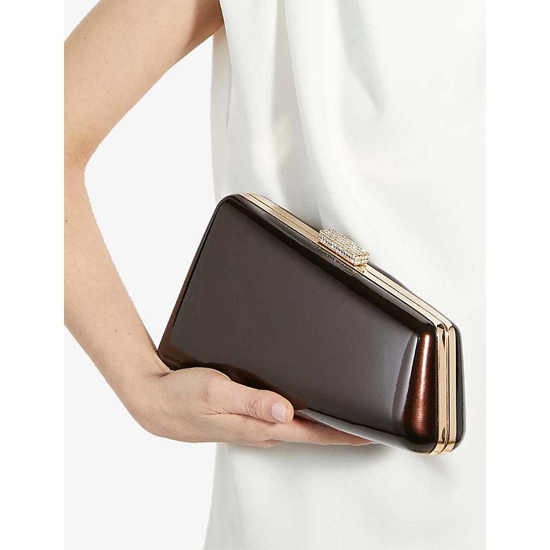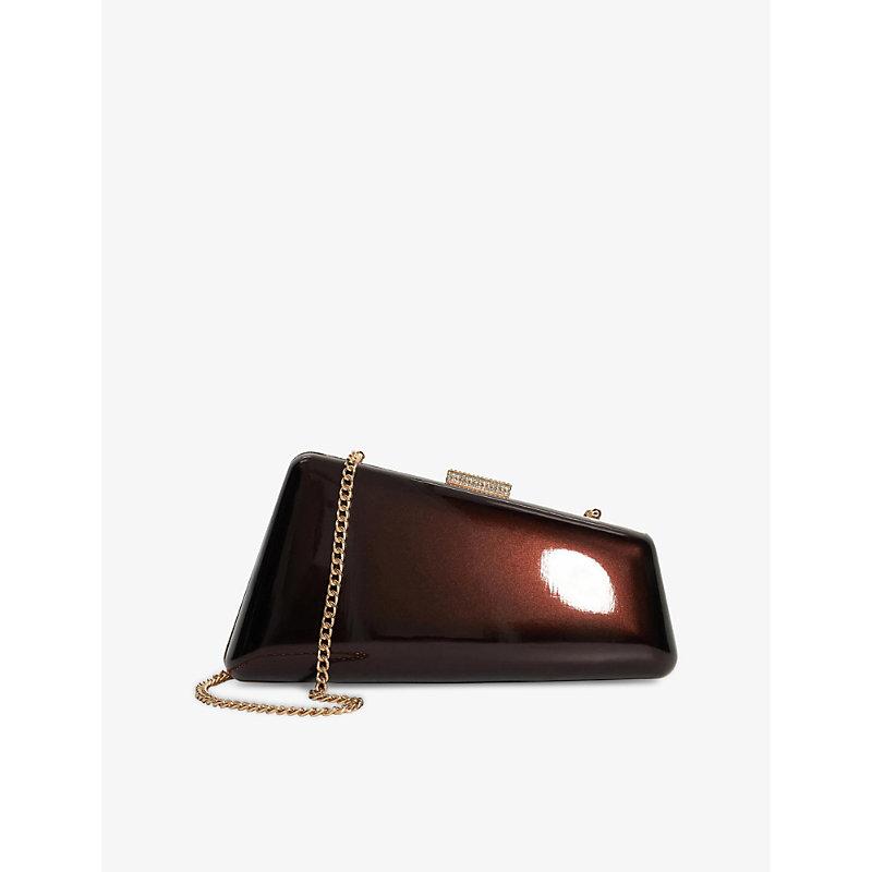 Dune Womens Brown Patent Balancing Asymmetric Patent Faux-Leather Clutch Bag