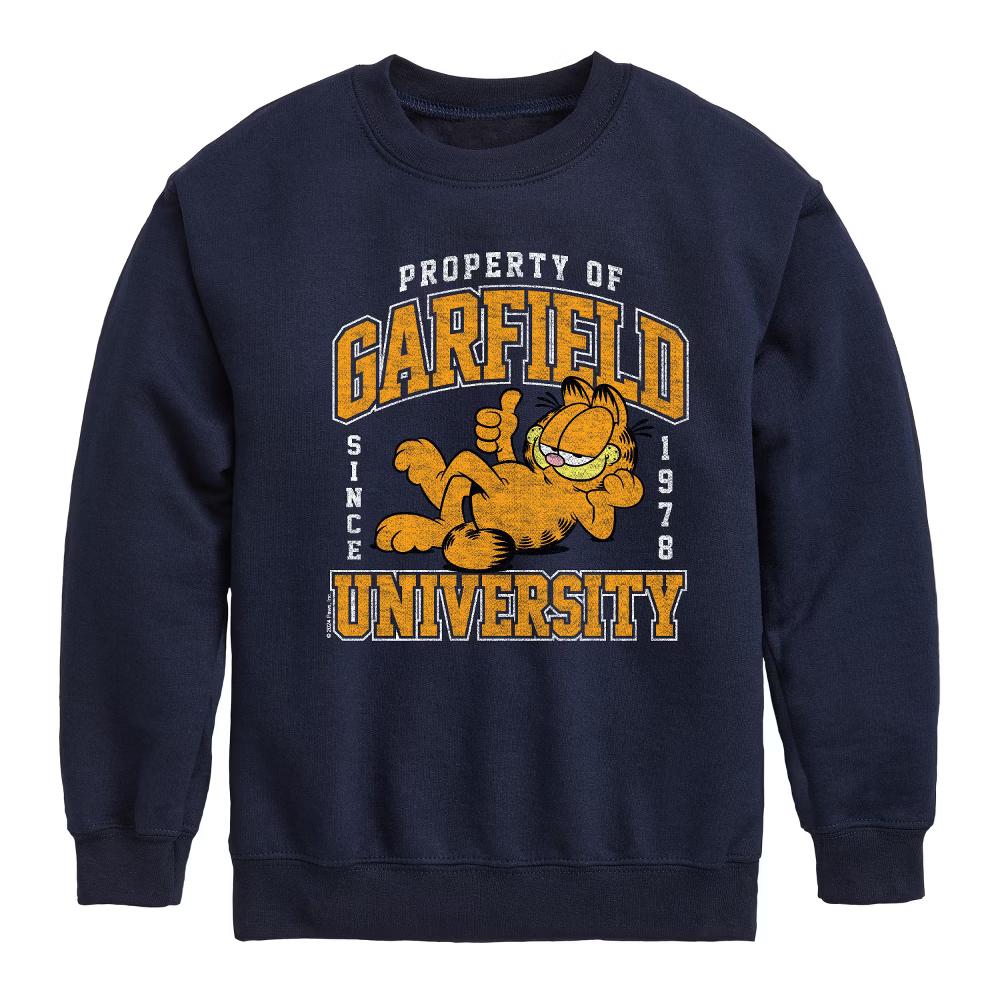 Garfield - Varsity - Toddler & Youth Crewneck Fleece Sweatshirt - Celebrate the essence of Nickelodeon's Garfield with officially licensed apparel featuring unique designs crafted exclusively by Hybrid Apparel. Each piece brings beloved characters, iconic imagery, and memorable moments to life, offering Garfield fans a one-of-a-kind way to showcase their passion.