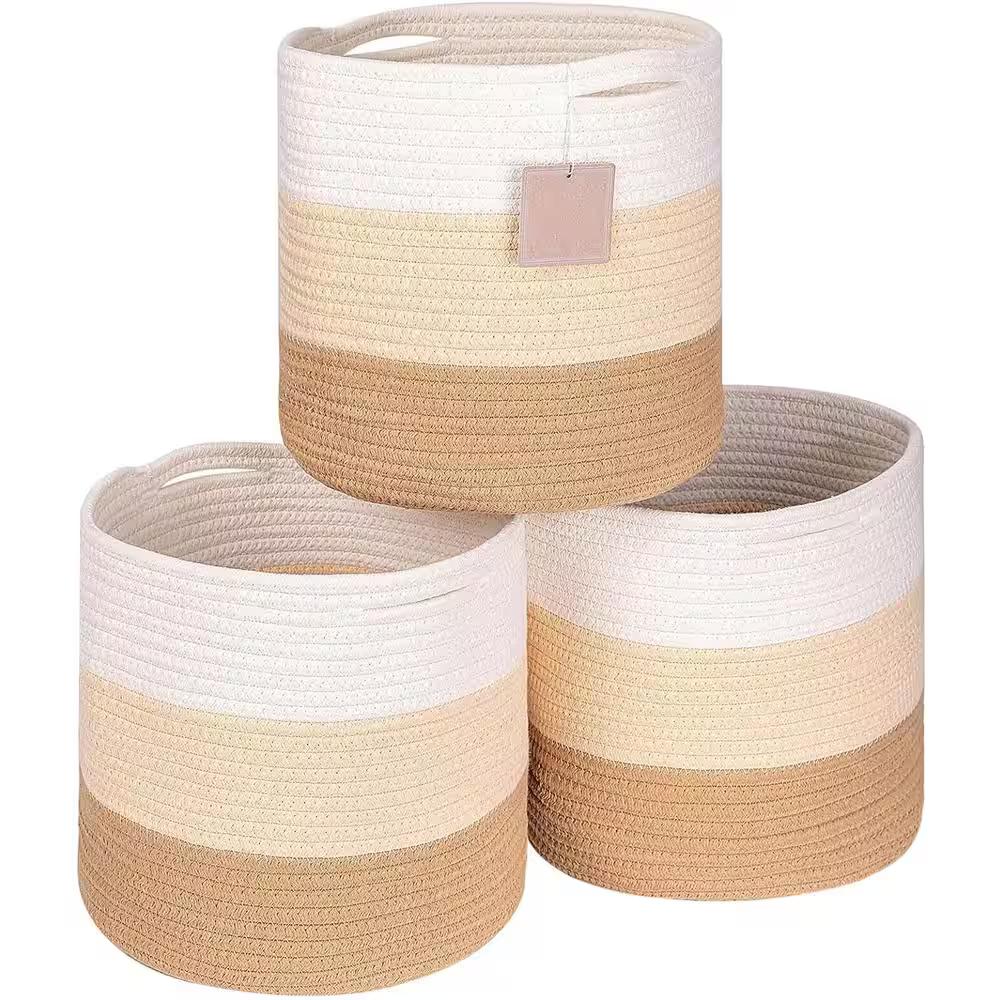 Round storage cubes baskets bins made of woven rope. no chemicals,has good resilience,safe and healthy. Durable materials and manufacturing process ensure that there are built to last years of continuous use. Color: Tone Honey.