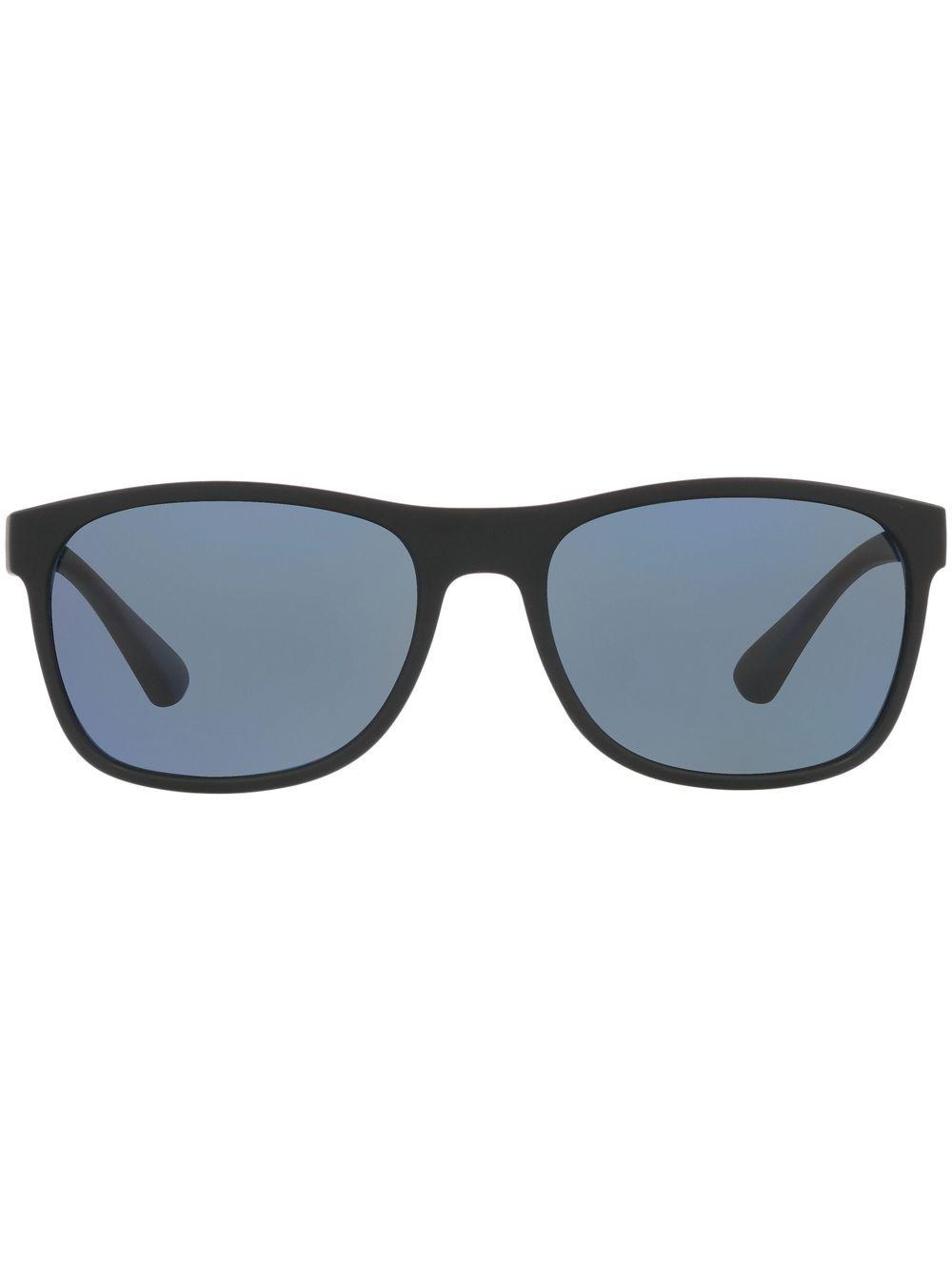 black square frame blue tinted lenses matte effect logo print at the arm straight arms curved tips These glasses come with a protective case. All glasses from FARFETCH are sold as non-prescription frames.