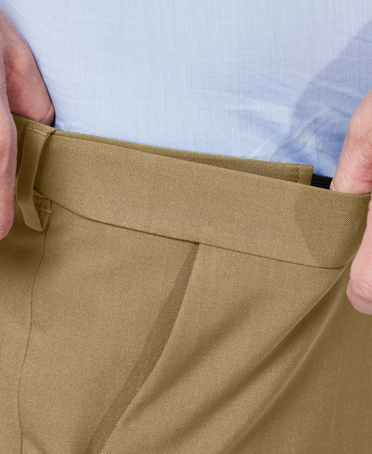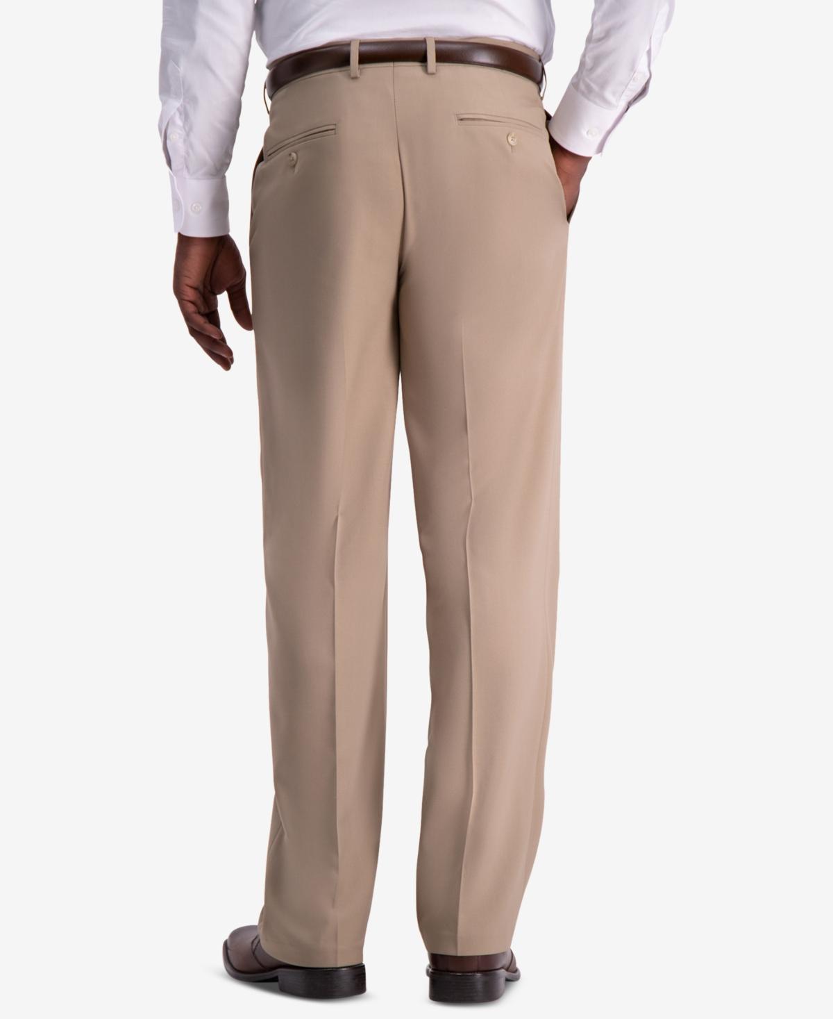 Enjoy a refined look that is modern and stylishly versatile with these flat front Haggar dress pants. Four-way stretch fabric and an expandable waistband provide exceptional comfort that matches their great look.