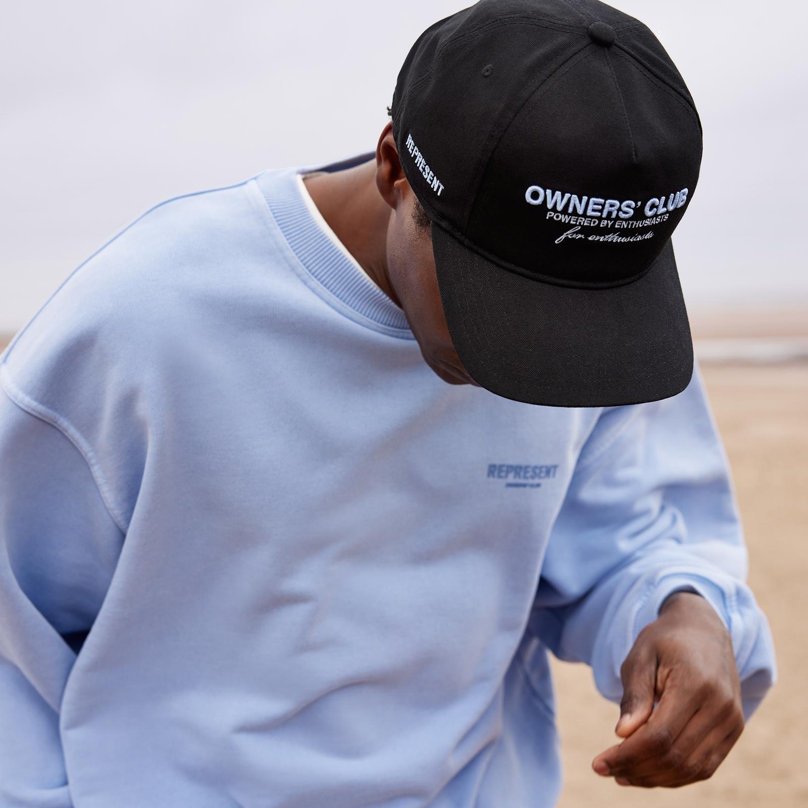 REPRESENT launched its Owner's Club in '21, a community for like-minded enthusiasts to share their passion for the brand. Part of the exclusive capsule for Coggles, this black cap is made from breathable cotton-twill with the brand's logo and motif embroidered on the front in contrasting blue thread.