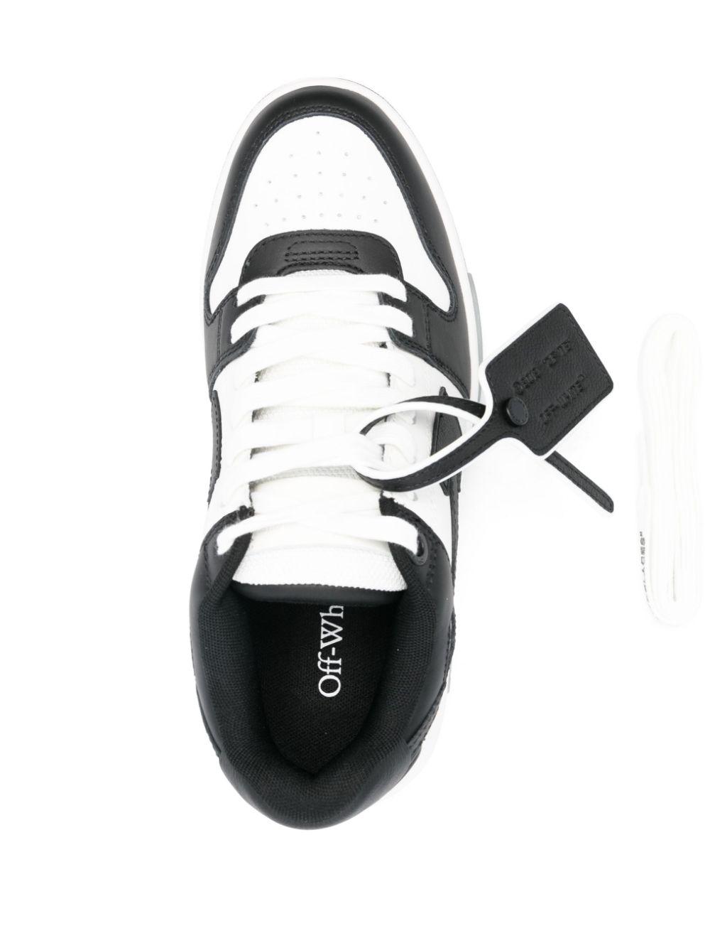 black/white leather signature Zip Tie tag signature Arrows motif panelled design front lace-up fastening round toe flat rubber sole Due to the dyeing process used, this product must not come into contact with water.