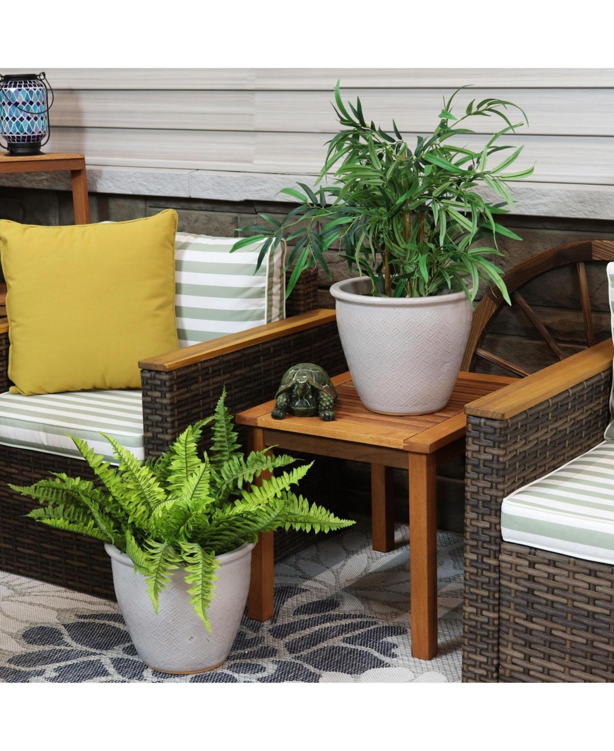 Display vibrant flowers, luscious greenery, or any kind of plant on the porch, deck, patio, or flower bed with this set of two beautiful ceramic planters. These ceramic planters add color to your indoor or outdoor plant displays instantly. With two identical pots, it's easy to create a cohesive look anywhere. Set the planters on the front step or porch for some symmetry, or place them at different heights on a plant stand (stand not included) in the living room. These outdoor pots for plants are made from durable ceramic with a mineral glaze finish for long-lasting beauty. The smooth finish also makes the planters easy to clean with water and a mild detergent. Each large flowerpot features one hole in the bottom to allow proper drainage for your flowers and plants. Always use a saucer (saucer not included) beneath the planter when placing them indoors to avoid spilling excess water on the floor.