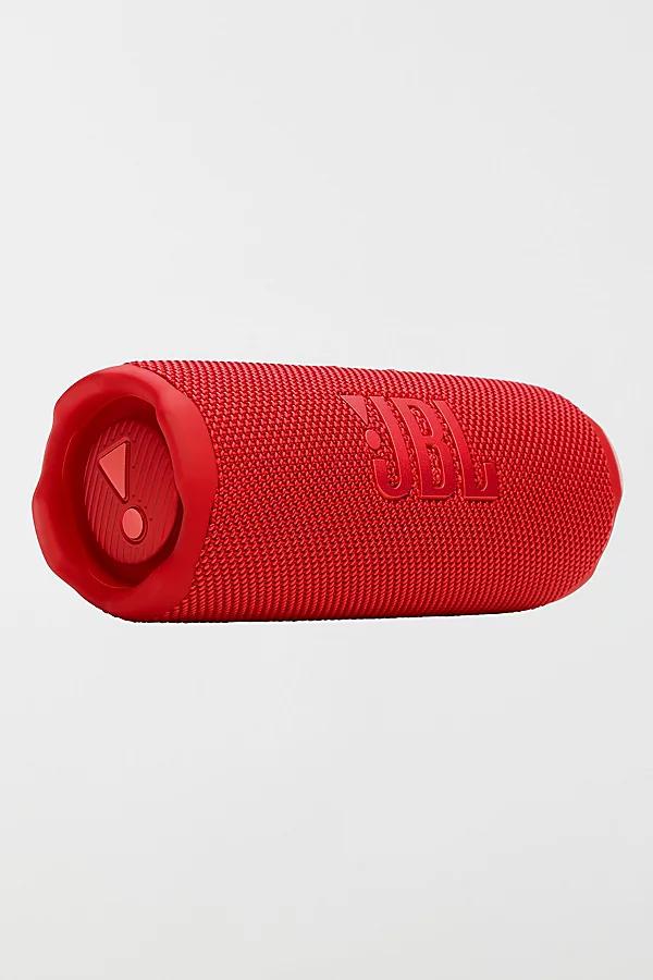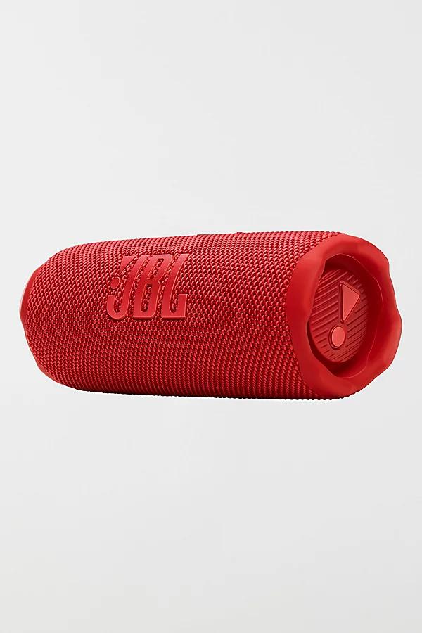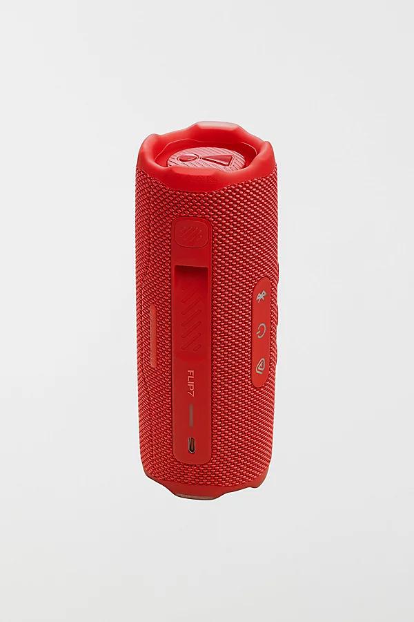 The JBL Flip 7 delivers bold JBL Pro Sound with AI Sound Boost enhancing bass and clarity for an immersive listening experience. Built to withstand any adventure it's IP68 waterproof dustproof and drop proof ensuring durability. Enjoy up to 16 hours of playtime with Playtime Boost for extra juice when needed. Multi speaker connectivity via Auracast™ lets you link multiple JBL speakers for an expanded soundstage. The PushLock system allows for easy portability with interchangeable accessories. Plus it supports lossless audio playback via USB C and offers customization through the JBL Portable app. Made with recycled materials it's as sustainable as it is powerful. * Features * Bold JBL Pro Sound with AI Sound Boost Up To 16 Hours Of Playtime Multi Speaker Connection by Auracast™ Waterproof Dustproof And Drop Proof Pushlock System with Interchangeable Accessories Lossless Audio Playback * Content + Care * Flip 7 Portable Bluetooth Speaker USB C Charging Cable Manual * Size * Transducers: 45 x 80 mm woofer/1.75 x 3" 16 mm tweeter/ 0.6" Output power: 25 W RMS for woofer 10 W RMS for tweeter Battery charge time: 2.5 hours (5V / 3A) Music play time: up to 14 hours (dependent on volume level and audio content) Dimensions (W x H x D): 7.19 x 2.7x 2.8" Net weight:1.23 lbs JBL Flip 7 Portable Bluetooth Speaker in Red at Urban Outfitters