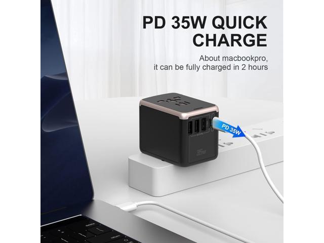 Fast PD 35W Type C for MacBook: Travel adapter with 35W USB-C port supports charging MacBook Air (M2) without sharing power.It also with 3x USB-A Ports(2.4A) & 1x USB-C (3A) ,total 8A ,and AC Sockets making it possible to cover almost any device needed for travel.Able to intelligently identify the current of your devices and fast charge them,Perfect compatible with your cell phone, camera, laptop, Tablets, iPads, Airpods, iPhones, Kindle, chargers, CPAP, power bank, etc. Universal Power Adapter: This all-in-one travel plug adapter with Type A C D J/K output plugs can work in more than 200 countries, like Europe, Thailand, New Zealand, Israel, Italy, France, Spain, Canada, China, Australia, Hong Kong, Argentina, Peru, Japan, etc. Small size travel gadget - 2.7 x 1.7 x 2.1". Small and lightweight, perfect for your worldwide traveling. Applicable Multiple Devices & Charge 6 Devices at Once: Max Power: 100V 8A /800W, 250V 8A/2000W, 50~60Hz.Power up faster withou