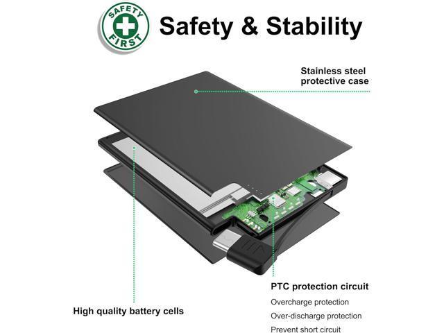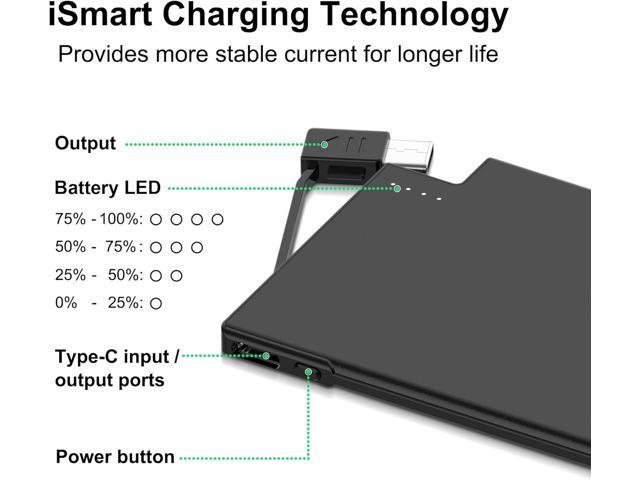 [Thinnest Portable Charger Ever] - Credit Card Size power bank for iphone only 3.54*2.52*0.16 inch (about half of iPhone 15 size), weighing only 2.58oz. Thecharge card phone charger easily fit into your pocket, pouch and wallet. [Powerbank Built-in Cable] - Battery pack charger portable,No need to carry a charging cable for iPhone 15 series and USB-C Port phones. [Unversial Compatibility Phones]- Portable phone charger for iphone 15 16 Series, Samsung, Google Pixel, Moto, LG USB-C Port phones, as well as USB-C Port (e.g. Android Tablet and Headphones) [2500mAh Capacity] - Small size portable power bank with 2500mAh battery bank for emergency use, It charge your phone about 0.5 times. Allowed on airplane carry-on [Product Warranty ]- Intelligent Control Circuit which protects your devices from over-charging, over-current, over-voltage, short circuit. We offer 1 Year Warranty for any problem about the charger