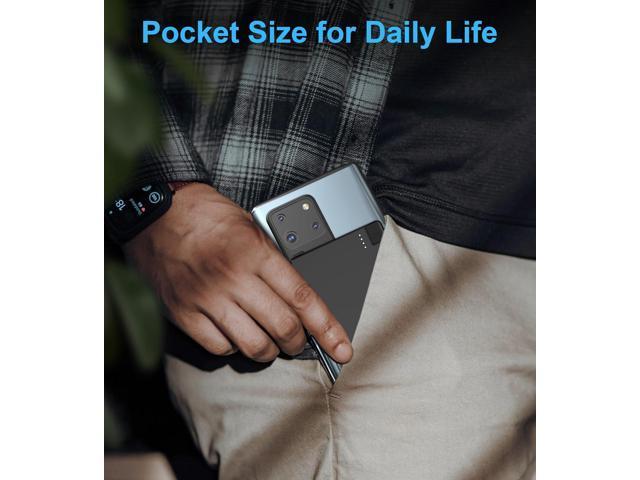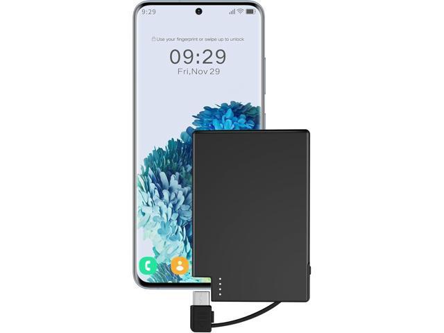 TNTOR Thin Portable Charger with Built in USB-C Cable, Slim Power Bank Credit Card Size Battery Pack Charger Portable for Pocket Wallet Compatible...