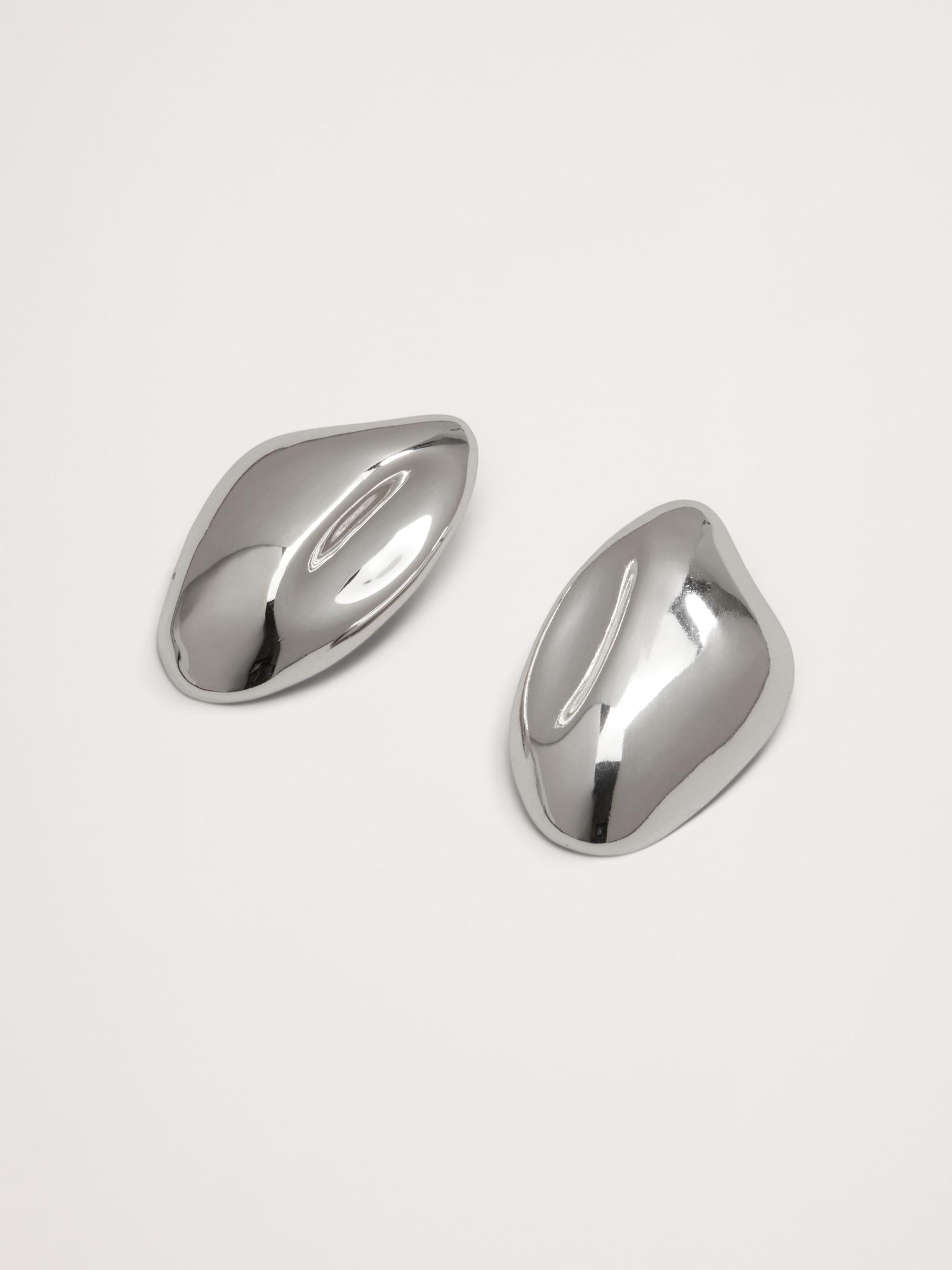 Curvaceous contoured earrings cast in parts and brazed together are hollow and lightweight. Handmade of brass with gold finishing or silver plating. Gold-finished or silver-plated brass. Stainless steel post backs.