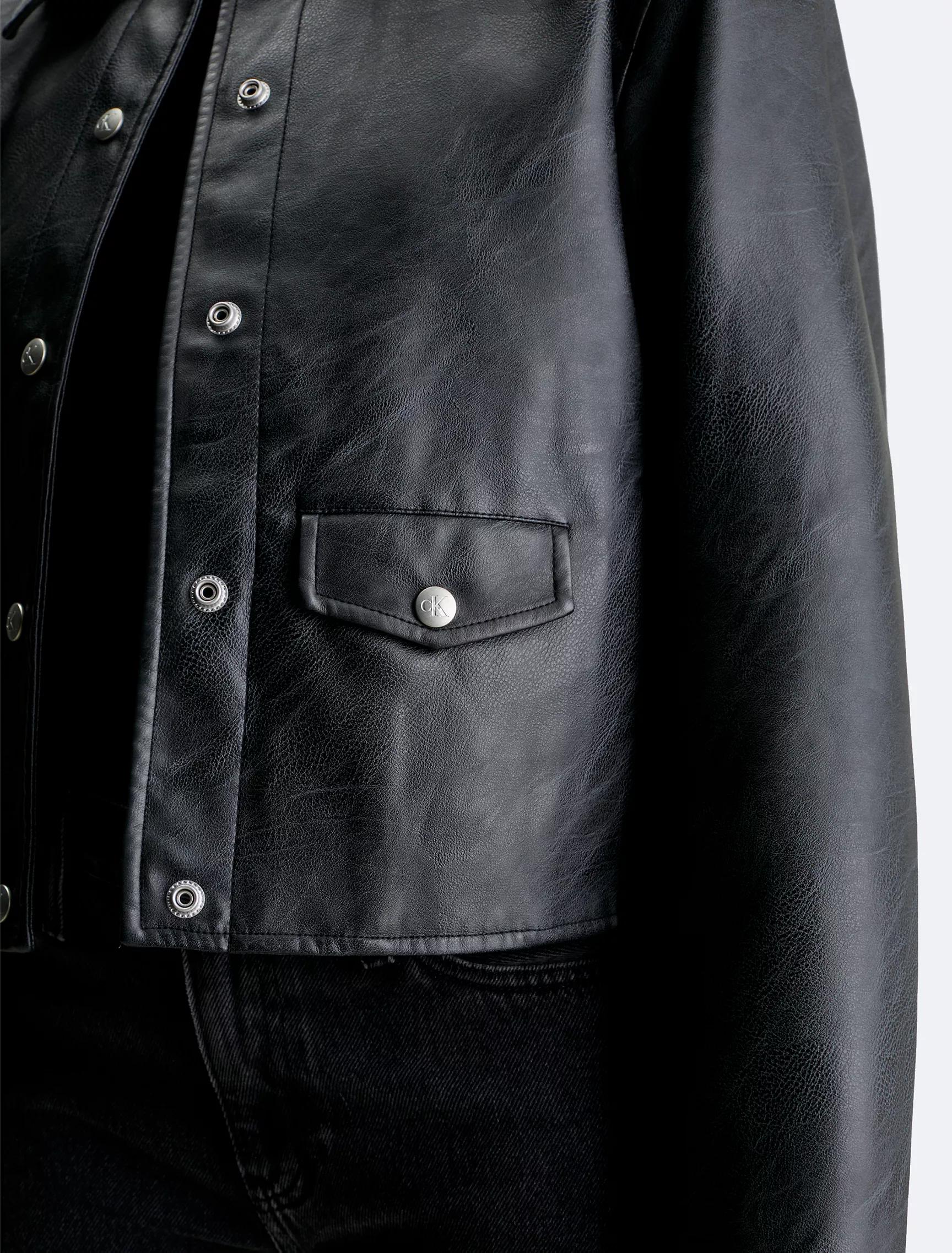 Calvin Klein Women's Faux Leather Shirt Jacket - Black