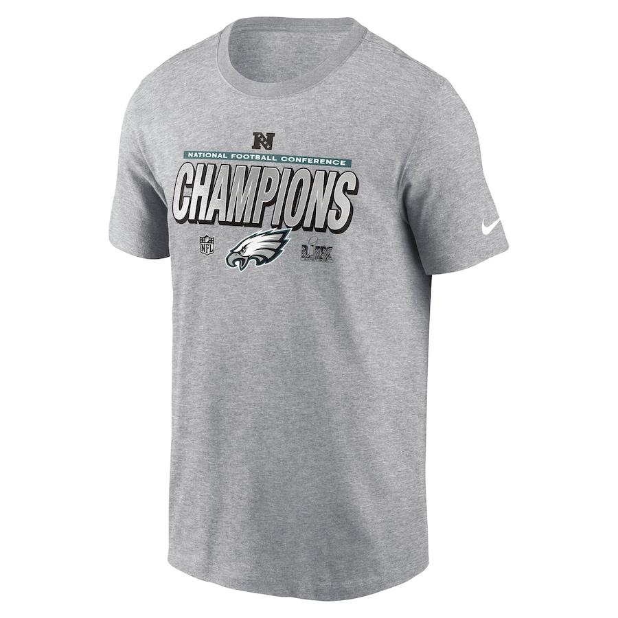 Men's Philadelphia Eagles Nike Heather Gray 2024 NFC Champions Locker Room Trophy Collection T-Shirt