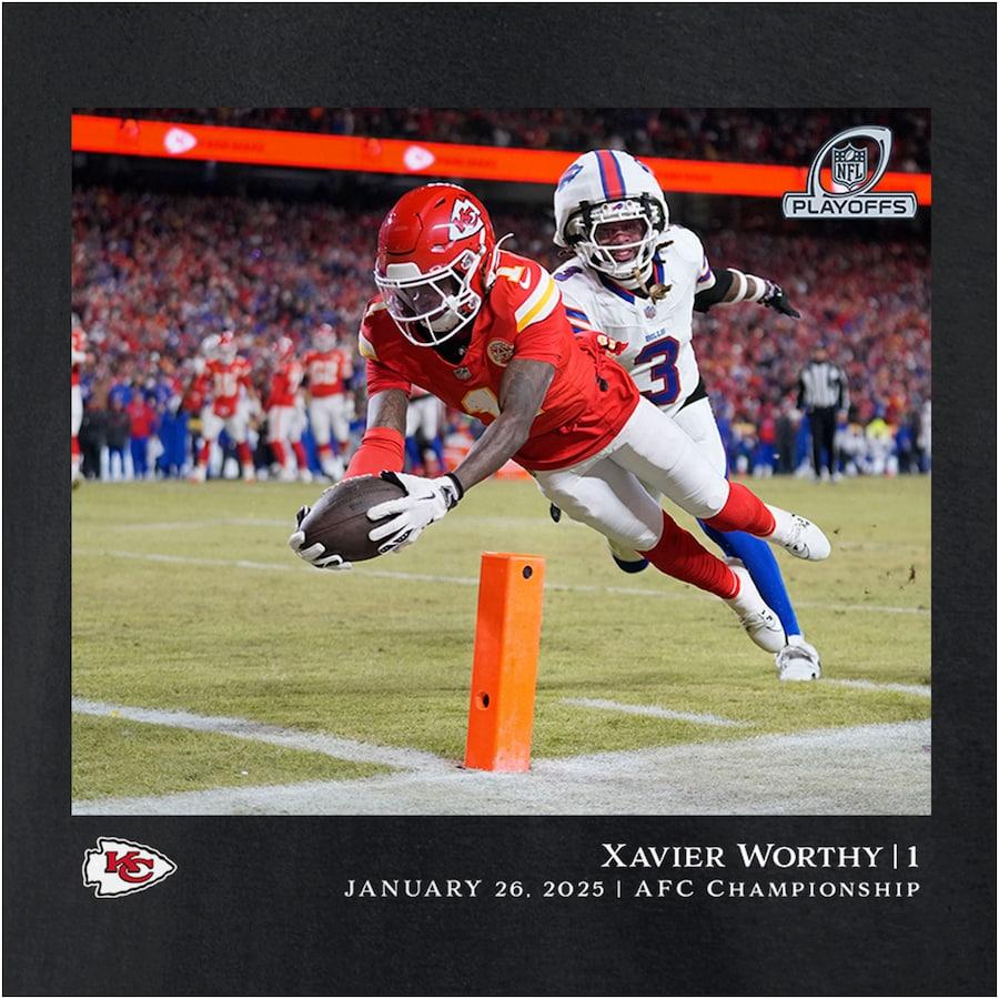 This Xavier Worthy NFL Flash Features AFC Championship T-Shirt is the perfect addition to your Kansas City Chiefs collection. NFL Flash Features is a curated collection of bespoke tees highlighting the most iconic photos every week, including the impressive performance by Xavier Worthy in the playoffs. The cozy tee features commemorative graphics touting the Kansas City Chiefs star and will have you more than ready for kickoff.