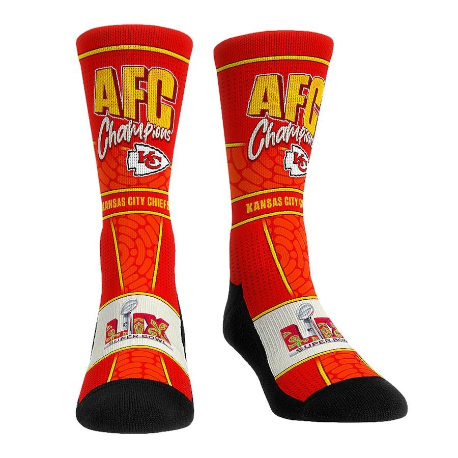 After a hard-fought season full of epic plays and clutch touchdowns, the Kansas City Chiefs have become the 2024 AFC Champions. Celebrate their big win with this Three-Pack Crew Socks Set from Rock Em Socks. Featuring commemorative 2024 AFC Champions graphics, you'll be able to remember this exciting moment in Kansas City Chiefs history for years to come.