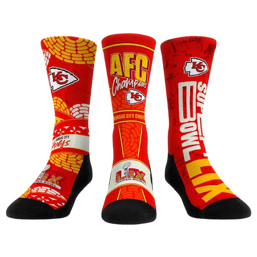 Unisex Kansas City Chiefs Rock Em Socks 2024 AFC Champions Three-Pack Crew Socks Set