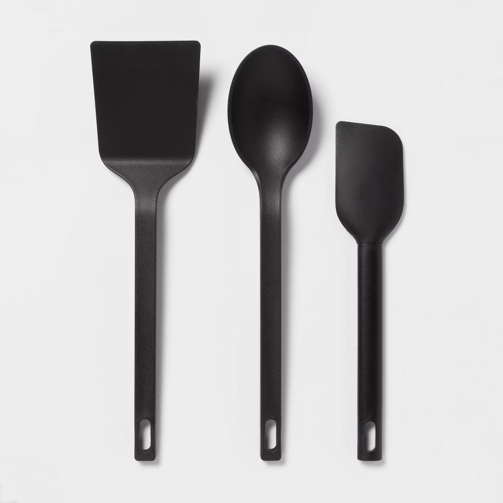 3pc Nylon Kitchen Utensil Set Turner Spoon Spatula Black - Room Essentials™: Cooking Utensils, Dishwasher-Safe, Adult Use