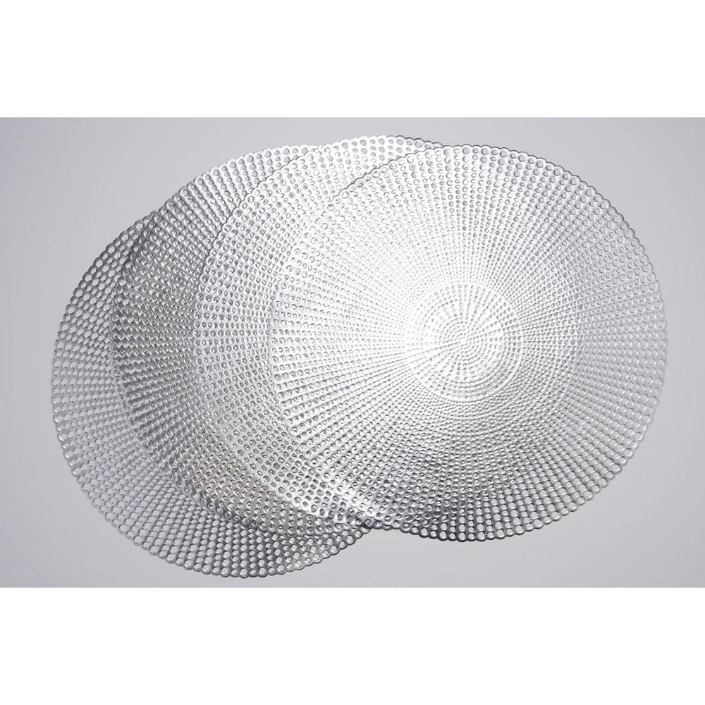Lintex Linens Brocade 16" Placemat Eco Friendly Vinyl Set of 4 - Perfect for Indoor and Outdoor Dinning - Sliver