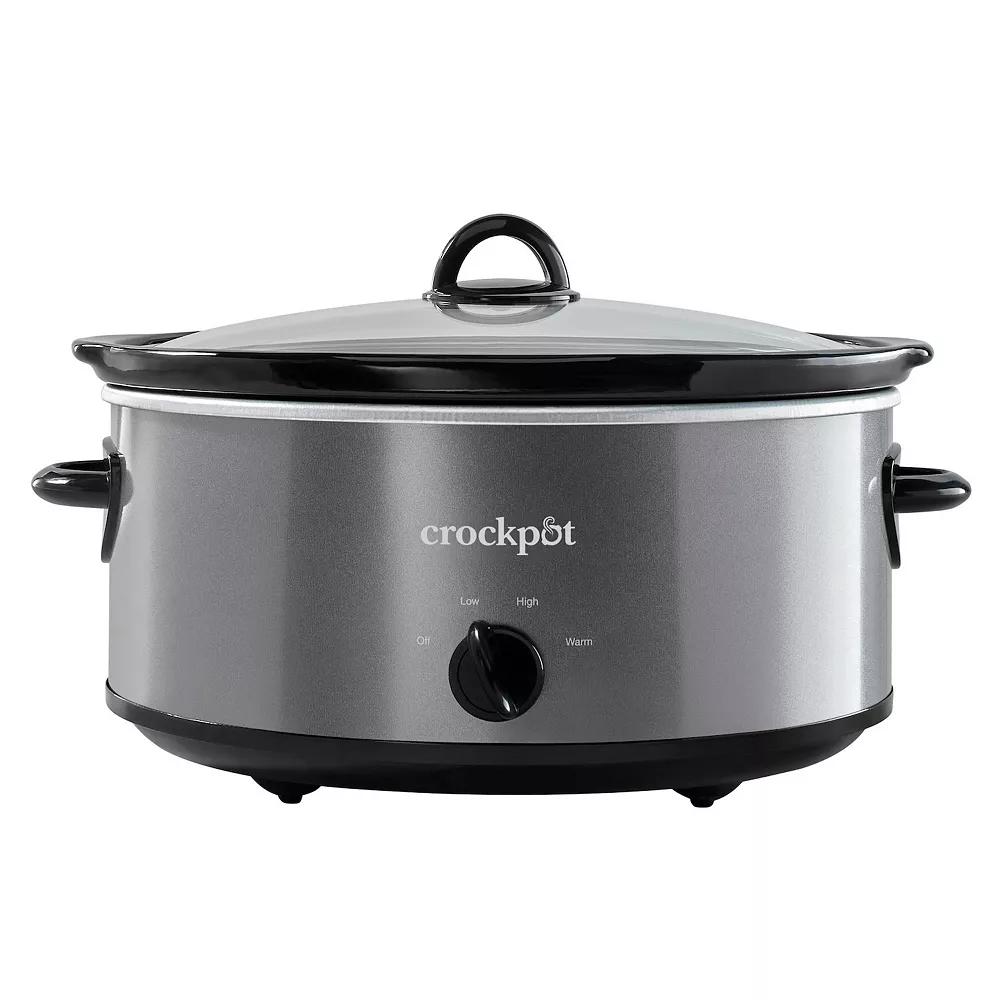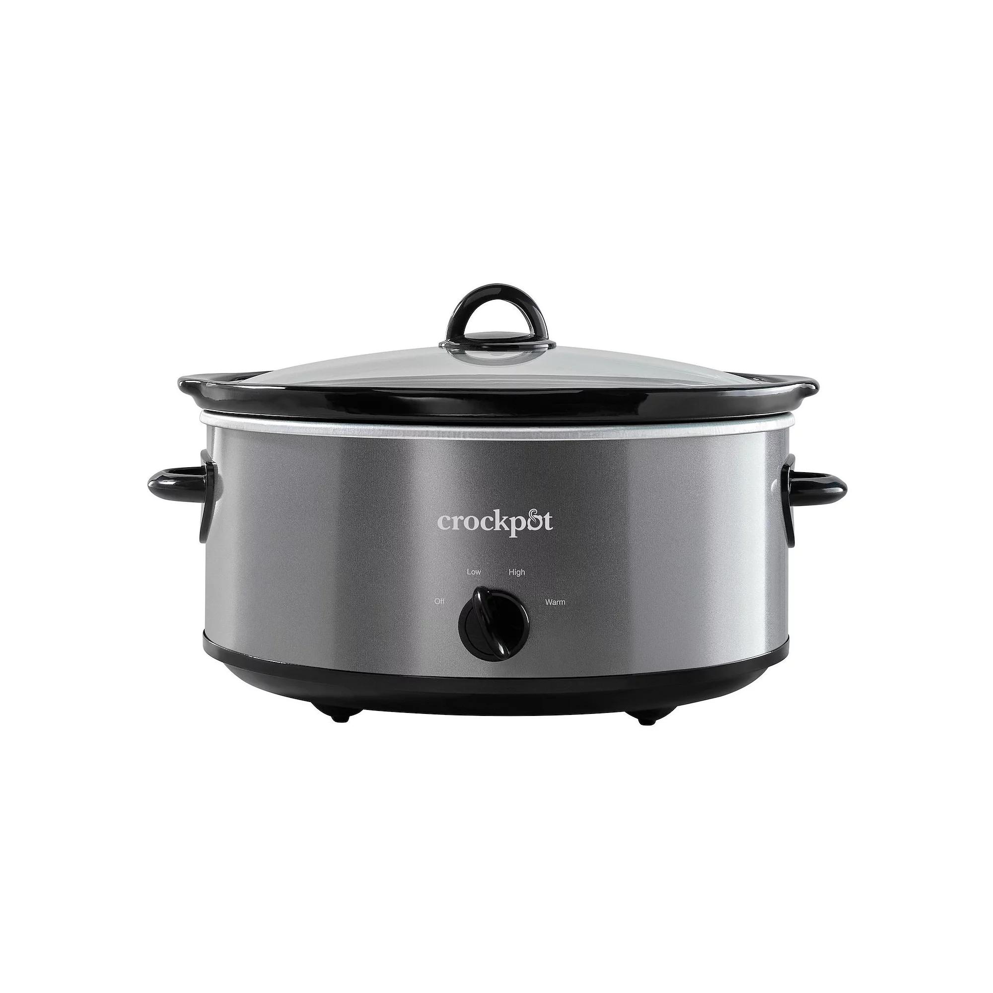 This Crock-Pot 7-quart manual slow cooker is designed in a variety of elegant polished stainless steel finishes to add a splash of style to your countertop as you slow cook a delicious meal. Oval stoneware is removable and can also double as a serving dish.7-quart capacity is ideal for roasts and servings for 9+ people. Manual low, high and warm settings lend cooking convenience. Removable dishwasher-safe stoneware crock provides quick cleanup. Side handles ensure easy transport.WHAT'S INCLUDEDSlow cooker Recipe bookPRODUCT CARE Lid & removable stoneware: dishwasher safe Base: wipe clean Manufacturer's 1-year limited warrantyFor warranty information please click here14.4"H x 9.5"W x 14.4"LWeight: 13.4 lbs. 7-qt. capacity Size: One Size. Color: Charcoal. Gender: unisex. Age Group: adult.