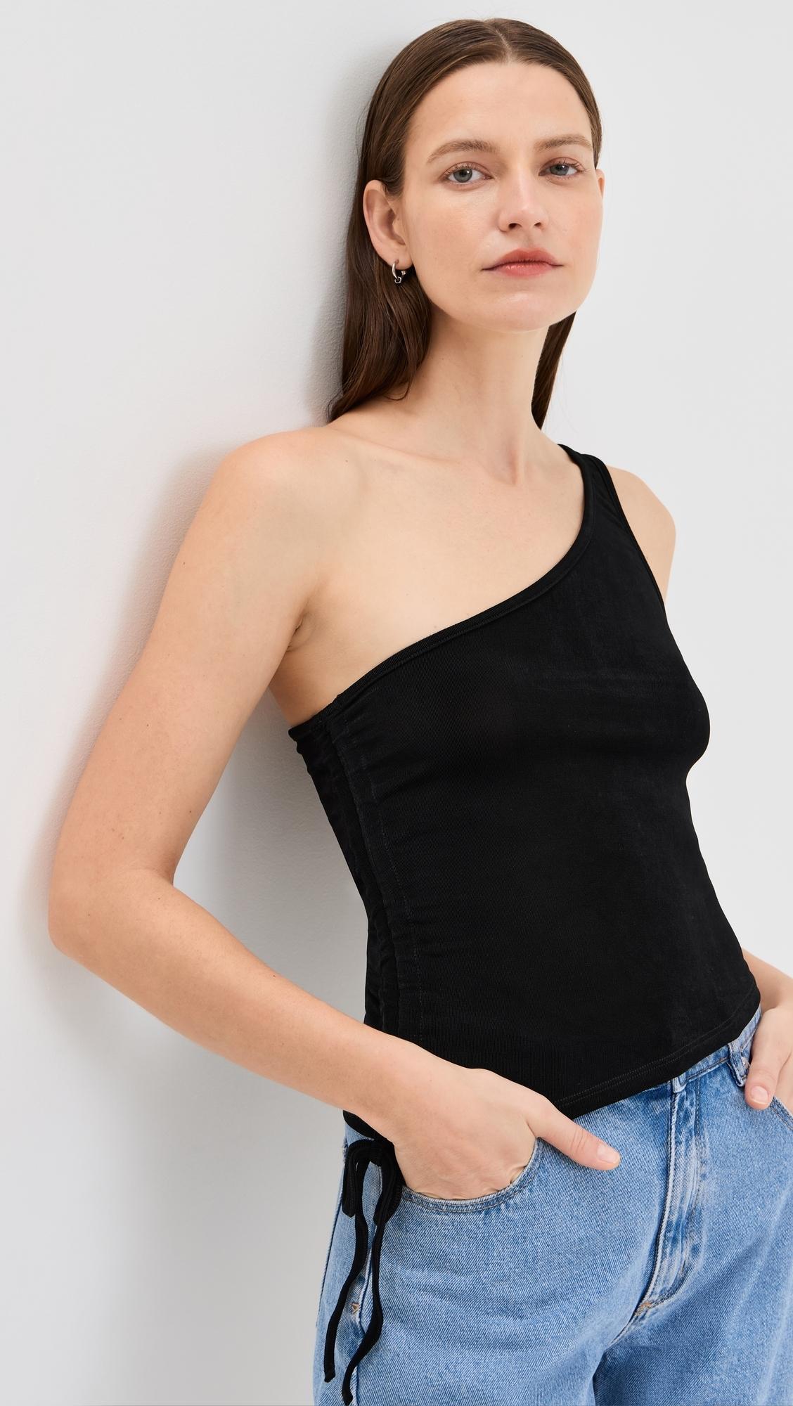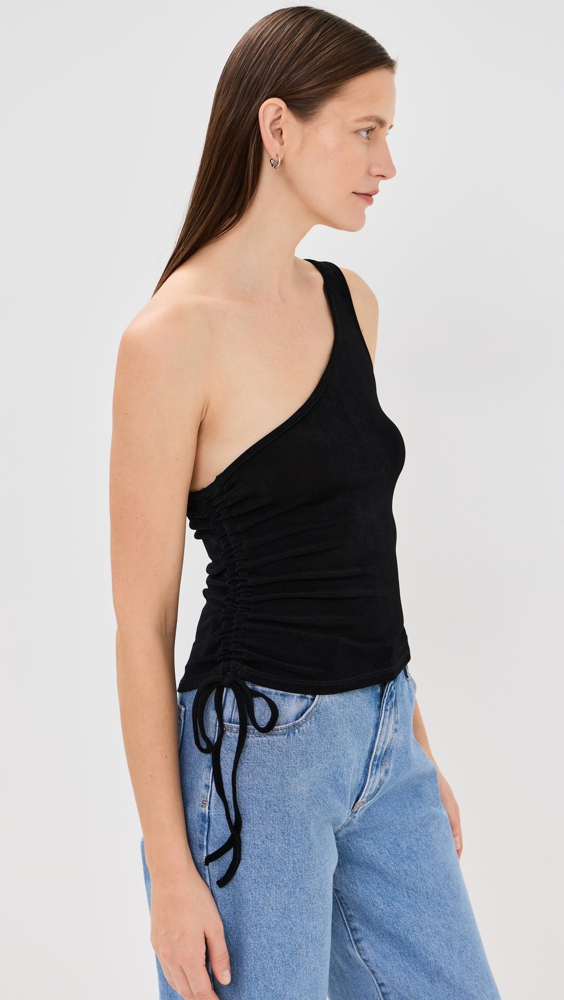Fabric: Lightweight slinky jersey. Ruching and ties at side. One-shoulder neckline. Shell: 95% acetate/5% elastane. Wash cold. Imported, China. Measurements: Measurements from size S Length: 18.5in / 47.0cm, from shoulder