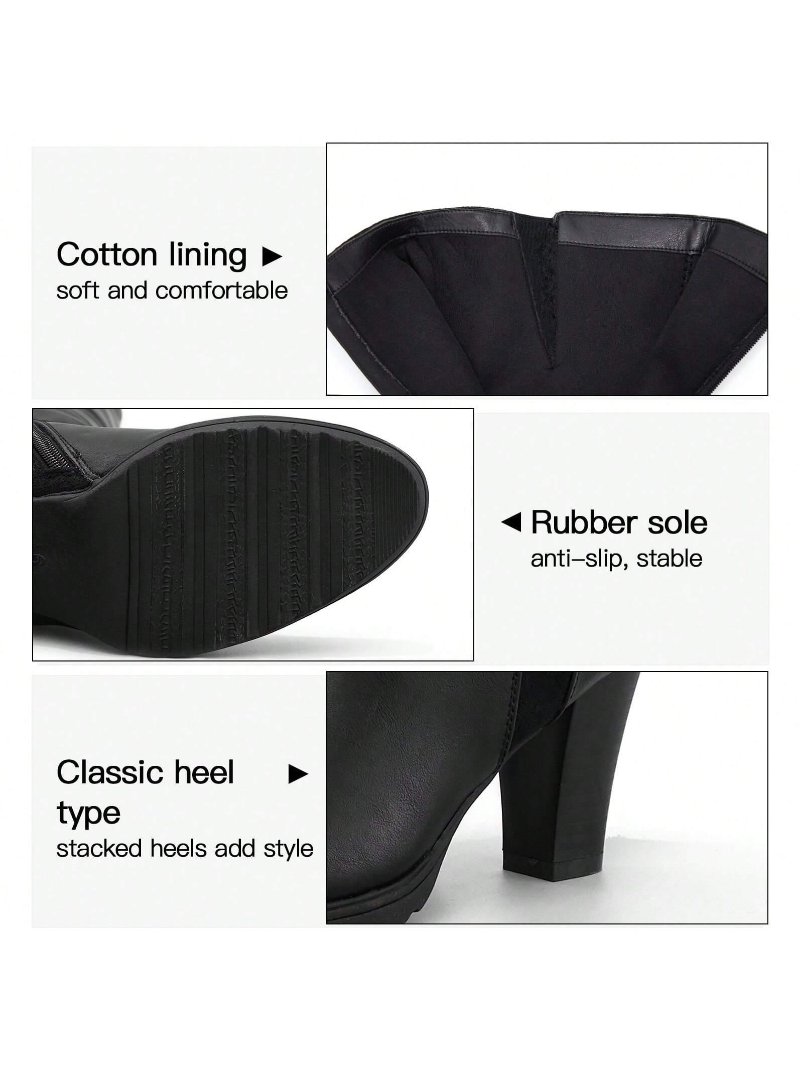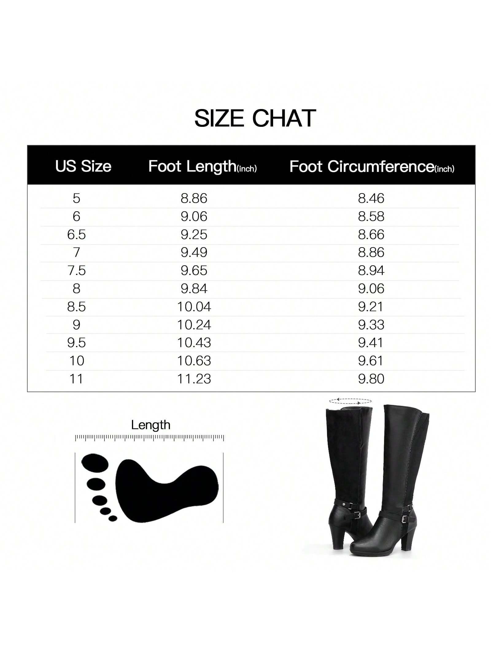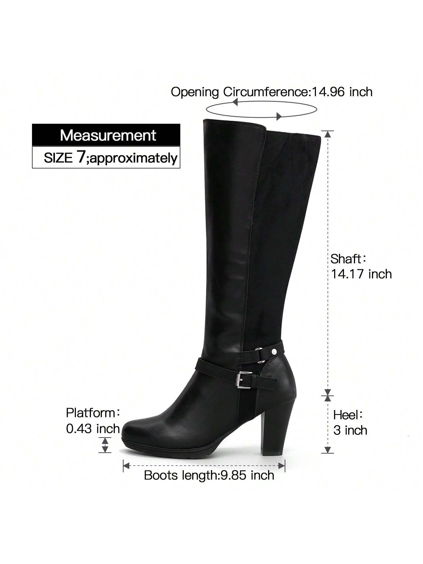Shaft measures approximately 14.2" from archPlatform measures approximately .50"Heel measures approximately 3". For more size data for knee-high boots, please refer to the size chart.Anti-slip rubber sole : The rubber sole and the pattern design are more slip resistant. The excellent traction of these knee high boots makes walking more stable.Elastic design, perfect fit for your legs : The elastic band design on the shoe mouth adapts to more calf shapes as much as possible. With the zipper feature on the side, you can wear these women high heel boots and take it off with no hassle, saving you time for lipstick on the commute.US10,US11,US6,US6.5,US7,US7.5,US8,US8.5,US9,US9.5