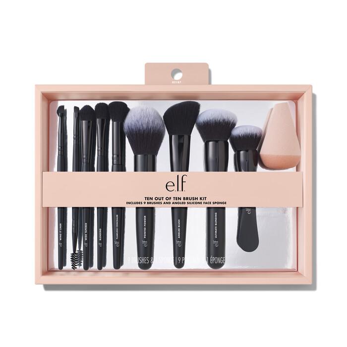 $54 Value! What it is: A 10-piece collection of our top-selling professional makeup tools for an e.l.f.ing gorgeous full face and eye look. Why you'll love it: A complete makeup brush set containing 10 of our best-selling sponges and face and eye brushes for full-face makeup application Includes 5 face brushes and a makeup sponge for applying and blending complexion makeup, plus 4 eye brushes for creating any eye look Can be used with powder, cream and liquid formulas 100% synthetic bristles are cruelty-free Face sponge is latex-free Crafted with an FSC® (Forest Stewardship Council®) Certified wood handle Create a 10 out of 10 makeup look with one must-have set! This complete makeup brush kit features 10 of our best-selling tools for e.l.f.ing gorgeous makeup application. What’s included: every brush and face sponge you could ever need for applying face makeup, sculpting your brows, amping up your eyes, contouring your look and buffing your complexion to perfection.