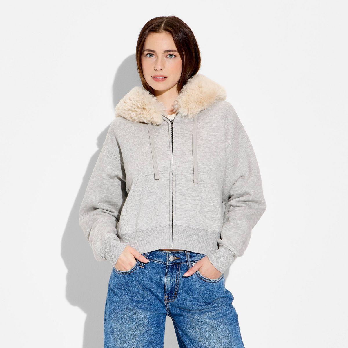 Women's Faux Fur Trim Hooded Zip-Up Sweatshirt - Wild Fable™