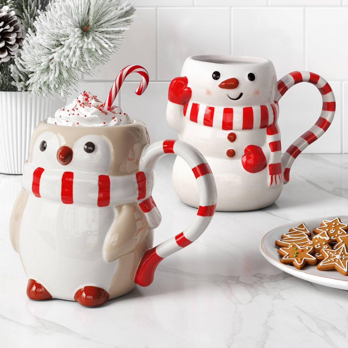 This 16-Fluid-Ounce Christmas Earthenware Figural Penguin Mug from Wondershop™ adds a cute and wintry touch to your mug collection. Made from earthenware, this mug is designed as a penguin wearing a candy-cane striped scarf for an adorable, whimsical look. Featuring a candy cane-striped curved side handle for comfortable holding, it's suitable for both hot and cold beverages and is dishwasher and microwave safe for easy cleaning and reheating.