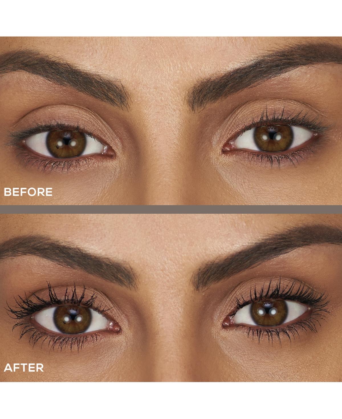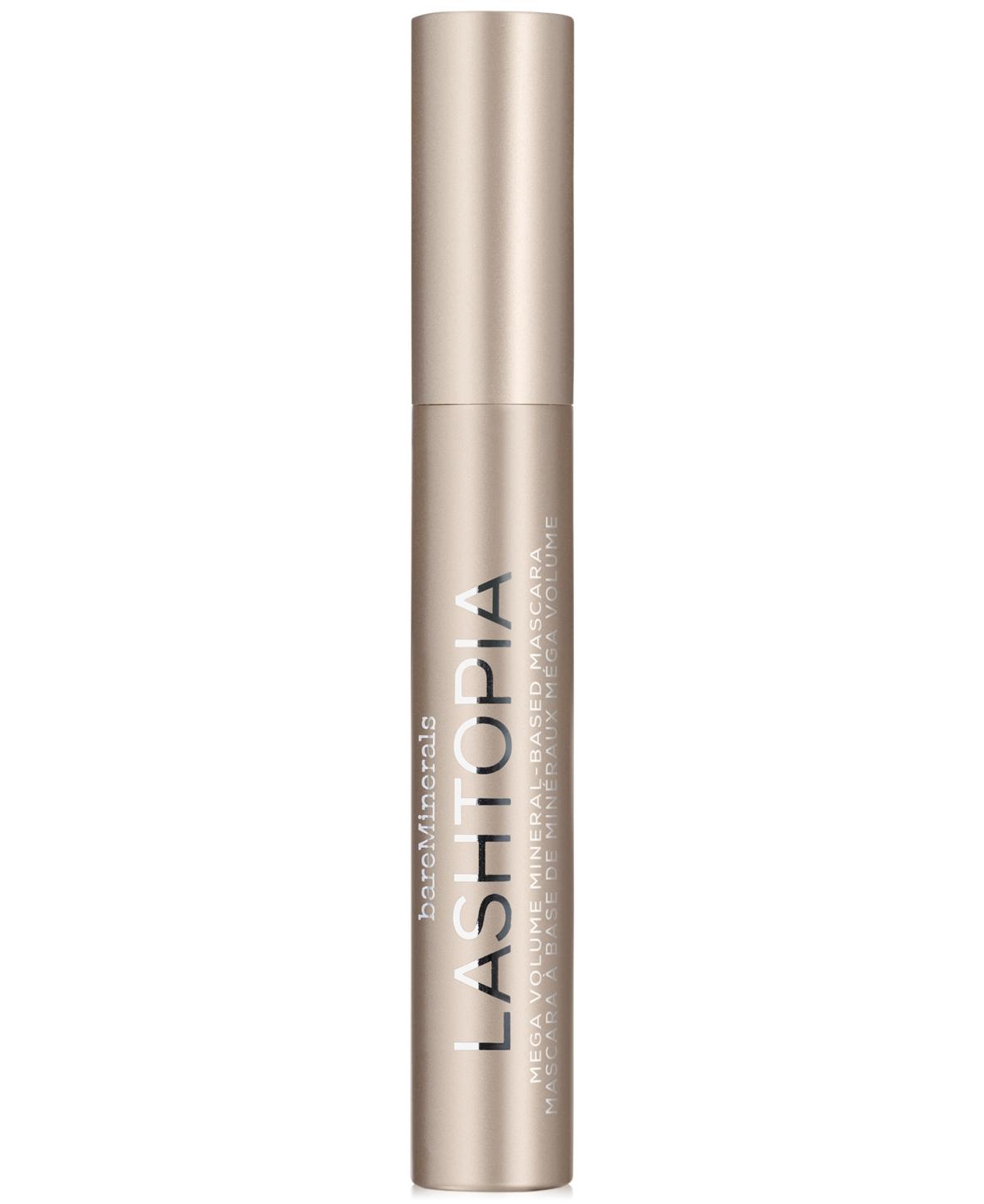 A mineral-based mascara that provides mega-impact, buildable volume. Lashtopia Volumizing Mascara provides up to 10 times lash volume (based on an in-vitro study of 10 coats on bare lashes). It also lifts and separates for fanned-out fullness. The formula includes nourishing minerals and lash-loving moisturizing ingredients so that lashes remain soft and plush, not stiff or brittle. Intense, deep-black mineral pigments provide maximum impact and all-day wear. Smudge, clump and flake resistant. The large brush features 600+ soft and staggered bristles that catch and evenly coat each lash. The tapered peak separates and fans out lashes from root to tip. Ophthalmologist tested. Safe for contact lens wearers.