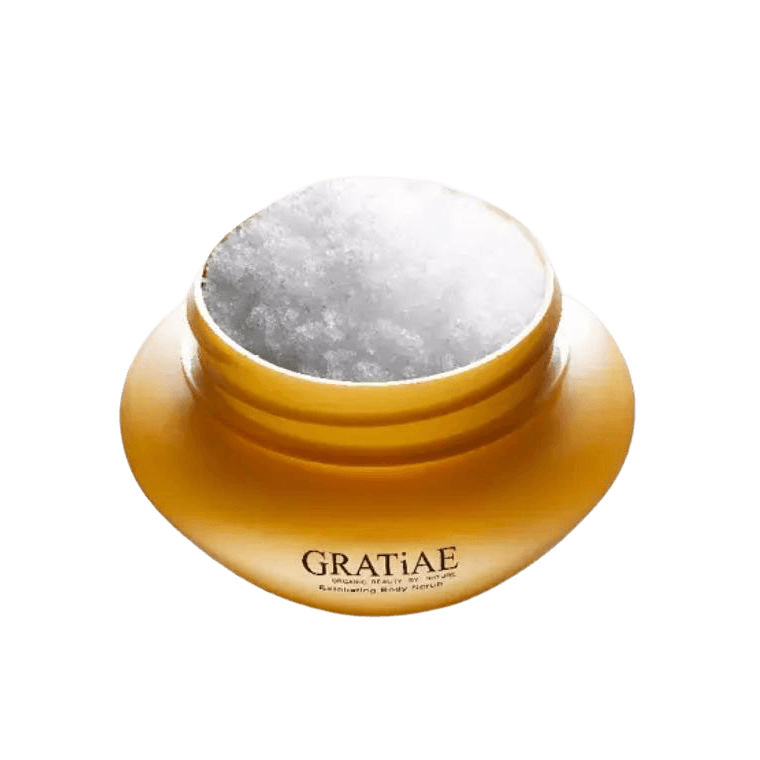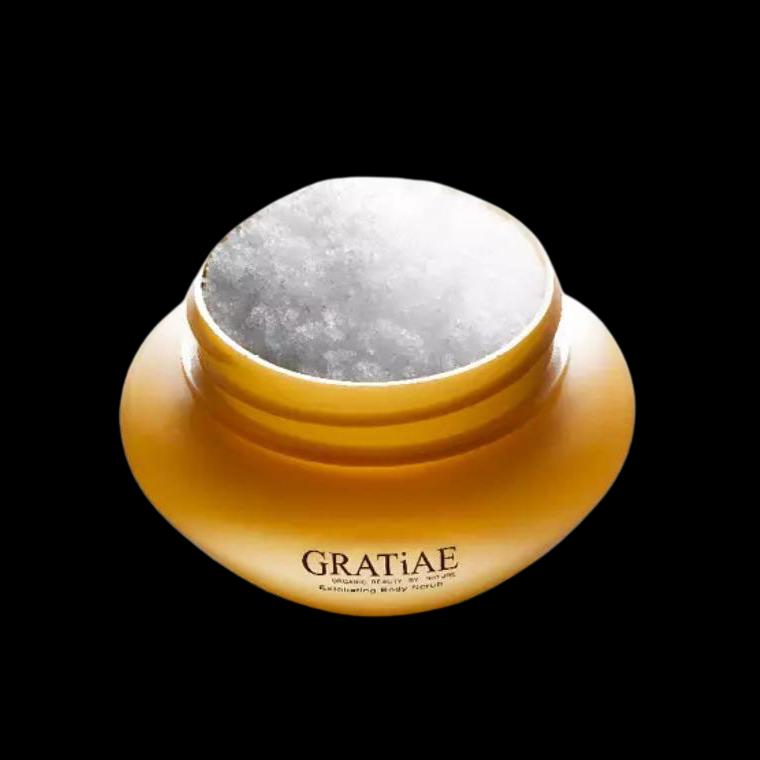 <strong>eCosmetics is an authorized retailer of GRATiAE.</strong> This refreshing salt scrub exfoliates and cleanses the skin, leaving you feeling invigorated and revitalized. It accelerates blood circulation and leaves your skin refreshed and soft.<br />These natural salt crystals are soaked into a mixture of essential and aromatic oils, to cleanse and enrich your skin with vital nutrients. The oils, such as organic jojoba oil and sweet almond oil give your skin hydration, nourishment, and a silky feeling.<br />This gentle body scrub exfoliator provides mild exfoliation and moisturization, leaving your skin feeling soft, smooth and hydrated smelling great of apple, green tea & ginger.