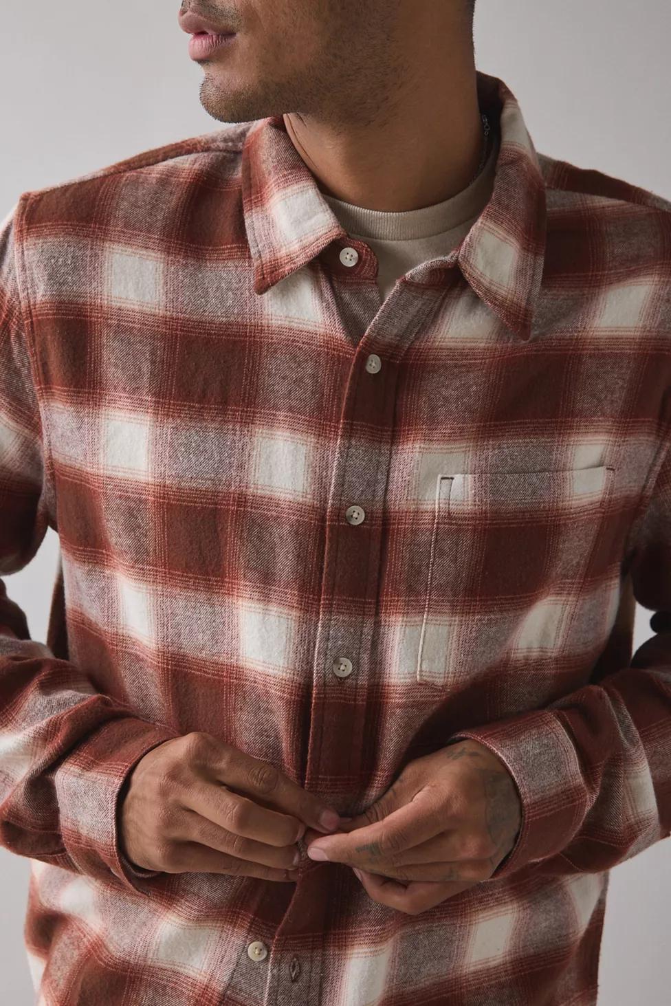 Relaxed, baggy fit button-down shirt by Urban Outfitters. Soft 100% cotton with an allover plaid pattern. Collared style long sleeve shirt topped with a left chest pocket. Go-to layering piece to add to your daily rotation.
