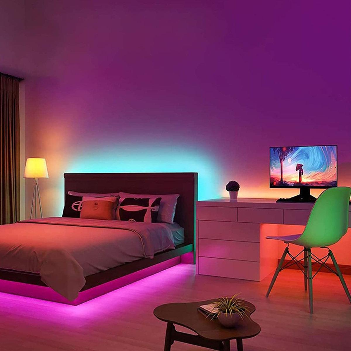 LED strip lighting has 300 RGB 5050 SMD Led in 32.8 feet with dimmer and brightness controls, and with 44 key IR remote controller and 5A 12V power adapter. The lights strip can be used for indoor or outdoor decoration.