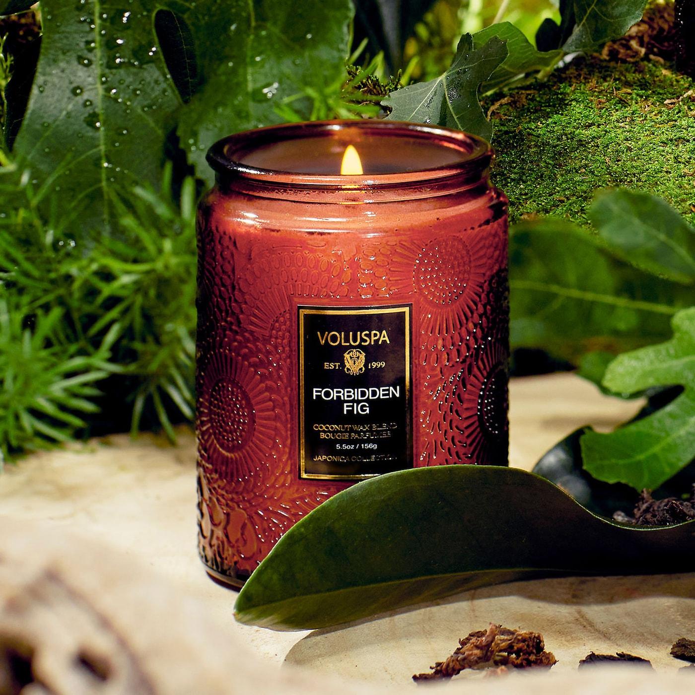 This candle will unearth the pure magnificence of the wild fig tree. The rustling wind sweeps up the essence of plump wild berries and fallen crushed leaves, leaving you with an aromatic fragrance so sweet and alluring that it earns its name - Forbidden Fig.